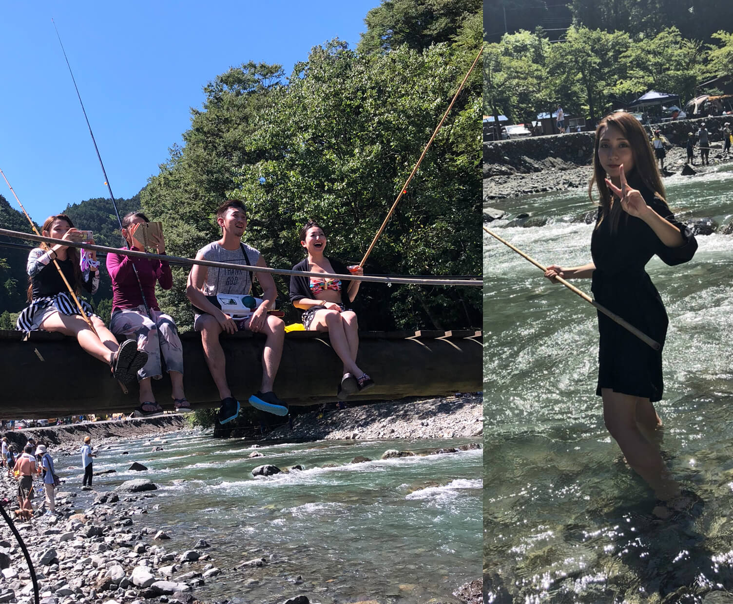 みんなで川で遊んだり、釣りをしたり。