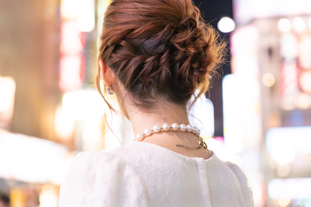 シニヨン(まとめ髪)は、うなじ付近で髪をまとめた上品なスタイルです。落ち着いた大人の女性らしい印象を演出できるため、高級店やクラブで働く方に特に適しているでしょう。