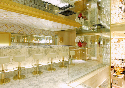 バーを抜け、階段を下りると 目の前には天井高が6メートルもあり、大きなシャンデリアが店内や女性を煌びやかに映し出す メインホールが現れます。